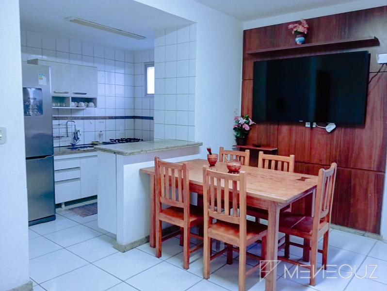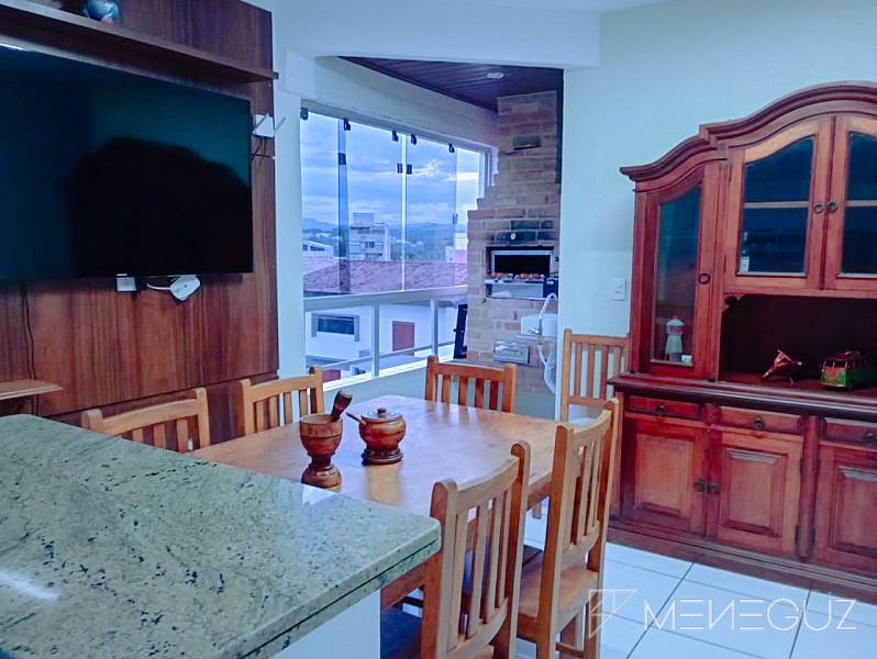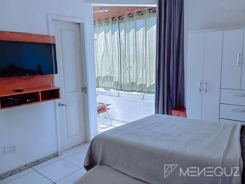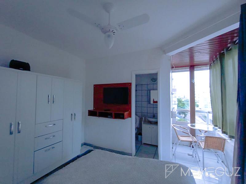 • 2 quartos, sendo 1 suíte com varanda e TV