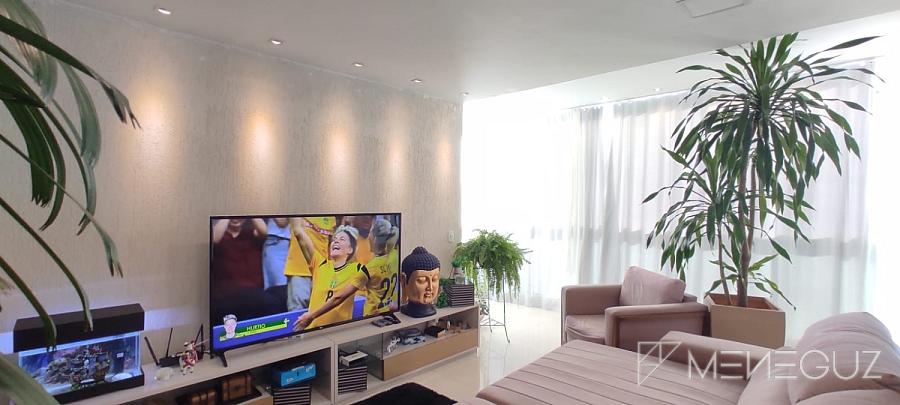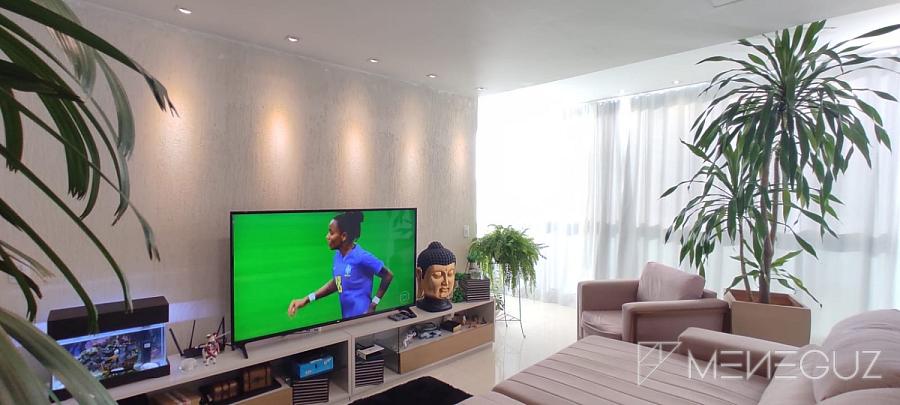 A espaçosa sala de estar recebe você com sua atmosfera acolhedora, perfeita para reunir amigos e familiares. Os móveis selecionados com bom gosto e os acabamentos de alta qualidade criam um ambiente luxuoso, enquanto as janelas amplas permitem a entrada de luz natural, iluminando cada cantinho.