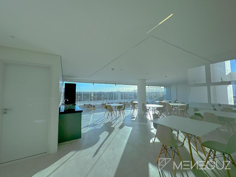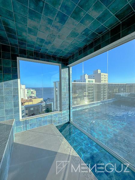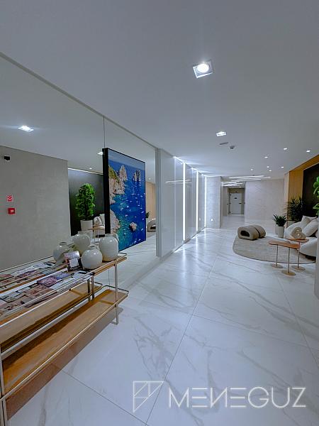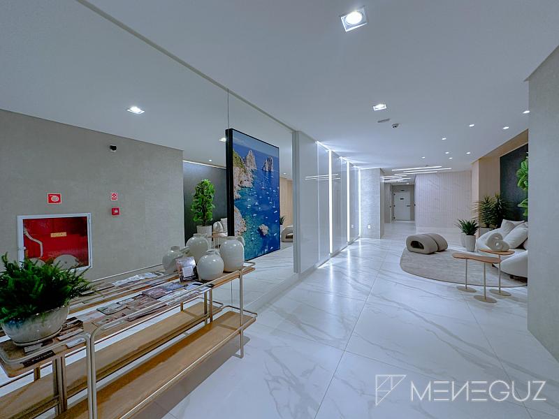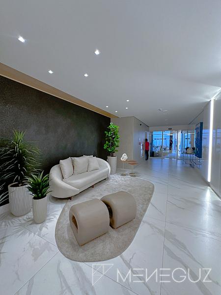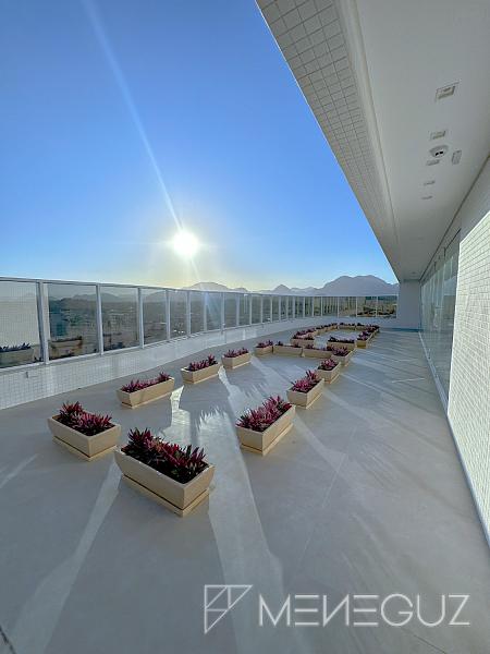 • O apto é composto por amplos 3 quartos, sendo duas suíte, duas vagas de garagem, um box para guardar utensílios de praia, que é um espaço extra excelente para desafogar o apto de coisas que não são tão utilizadas no dia-a-dia.
