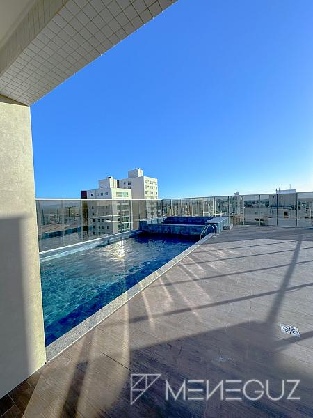 O apto é composto por amplos 3 quartos, sendo duas suíte, duas vagas de garagem, um box para guardar utensílios de praia, que é um espaço extra excelente para desafogar o apto de coisas que não são tão utilizadas no dia-a-dia.