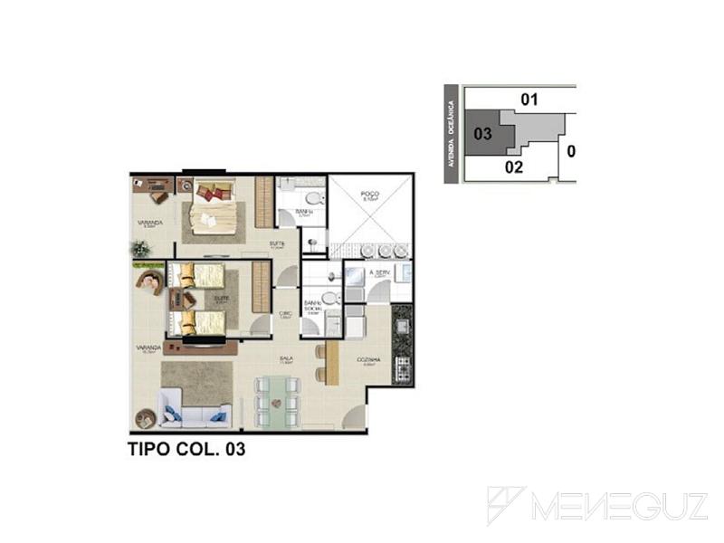 • Opções de 2 a 3 quartos (sendo uma suíte), com espaço ideal para sua família.