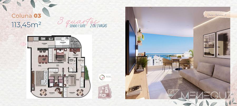 • Coluna 03: 113,45 m² | 3 quartos (1 suíte) | 2 ou 3 vagas