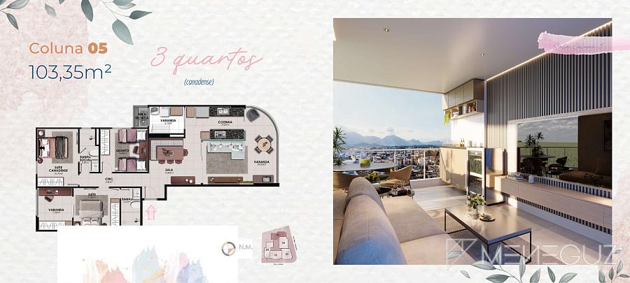 • Coluna 05: 103,35 m² | 3 quartos (2 suítes) | 2 vagas (canadense)