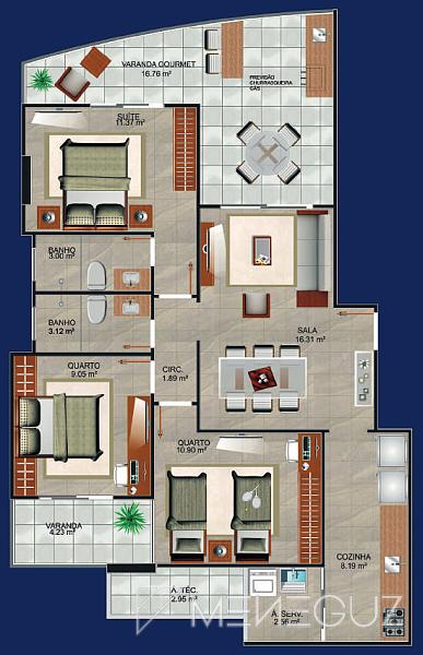 3 dormitórios (1 suíte)