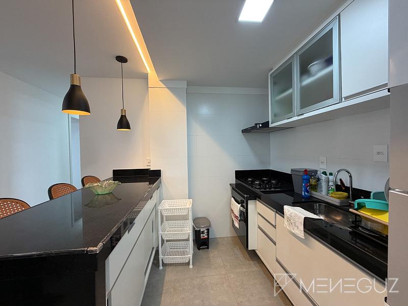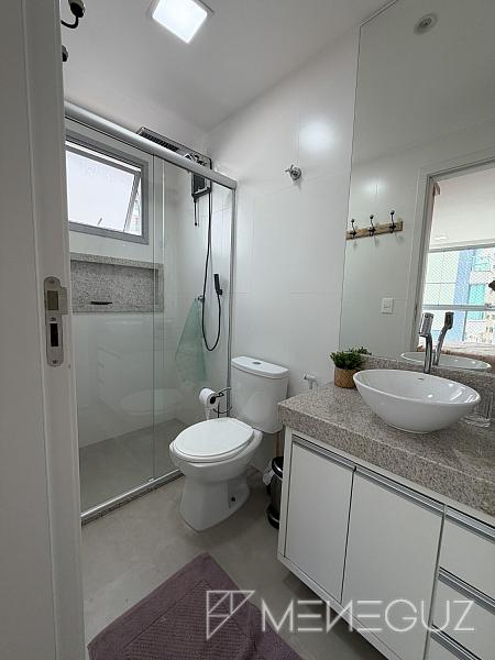 Com 120 m², o imóvel entrega amplitude de verdade: 3 quartos, sendo DUAS SUÍTES, ambientes bem distribuídos e um padrão de mobiliário pensado para quem busca conforto, estética e praticidade. A incidência de sol da manhã deixa os ambientes mais agradáveis, claros e ventilados, elevando a experiência de morar (e também o apelo para locação de alto padrão).