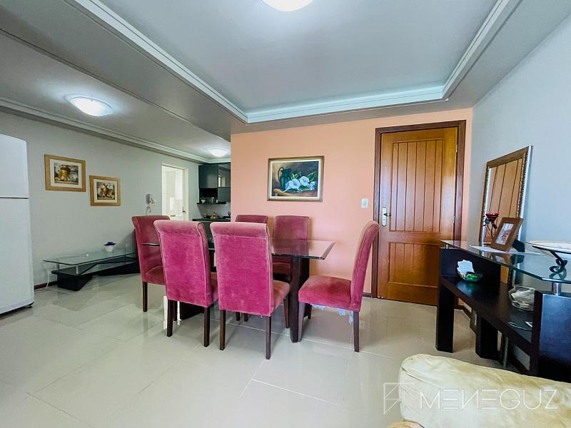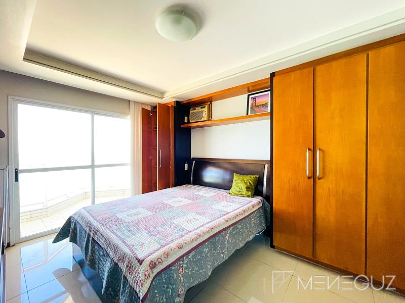 O apto é composto por amplos 3 quartos, sendo uma suíte, duas vagas de garagem, um box para guardar utensílios de praia, que é um espaço extra excelente para desafogar o apto de coisas que não são tão utilizadas no dia-a-dia.