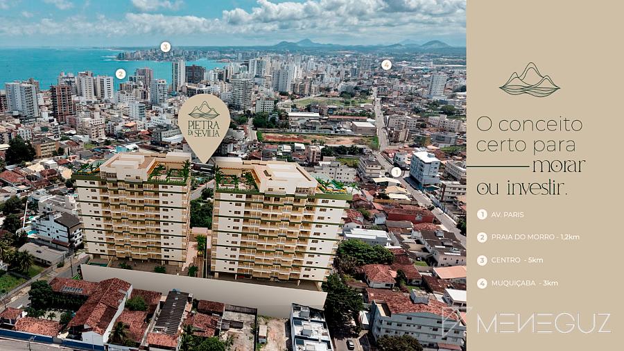 Diferencial Competitivo: Enquanto concorrentes oferecem unidades distantes da orla, o Pietra de Sevilha coloca você literalmente a um minuto da praia - um ativo raro que valoriza 23% mais rápido que imóveis a 500m do mar (dados Secovi-ES).