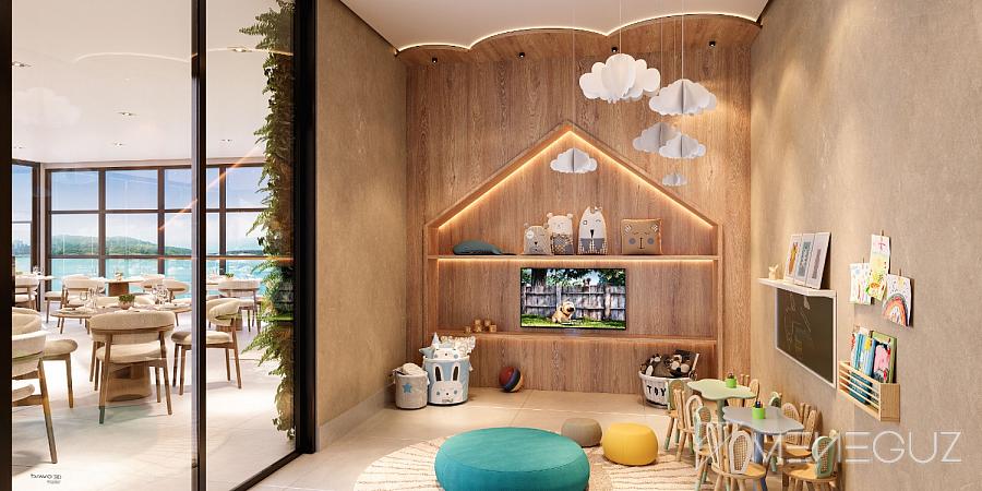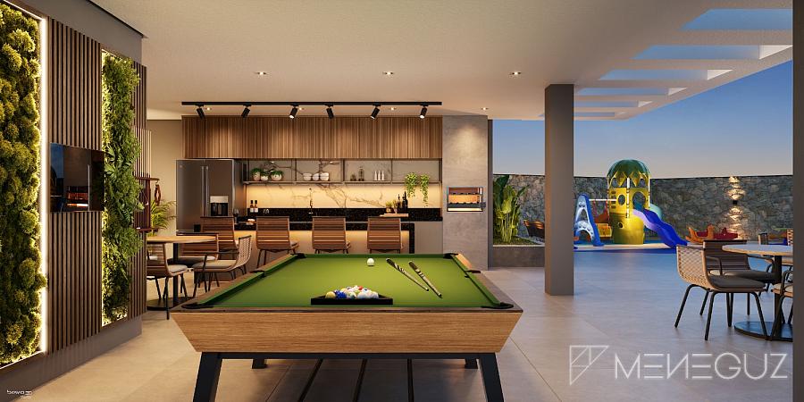 • No Pilotis: Espaços pensados para o convívio e a diversão da família, com áreas verdes, salão de festas e espaços infantis.