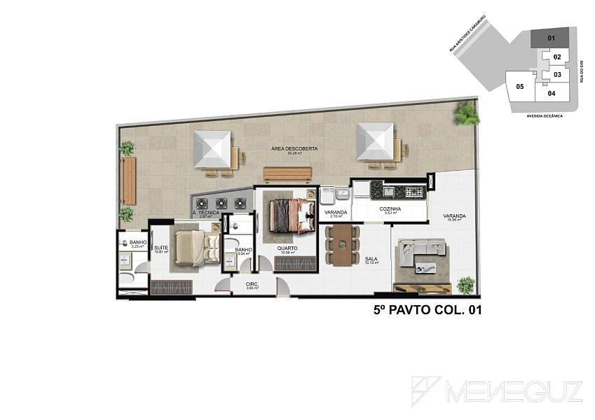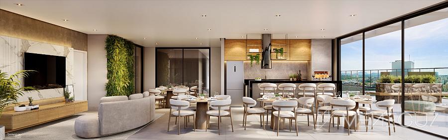 • Na Cobertura: Um oásis exclusivo com vistas deslumbrantes, piscina com borda infinita, academia de última geração e áreas gourmet para celebrar momentos inesquecíveis.