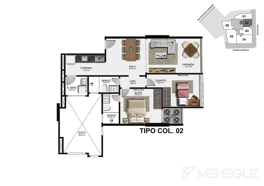 2 dormitórios (2 suítes)