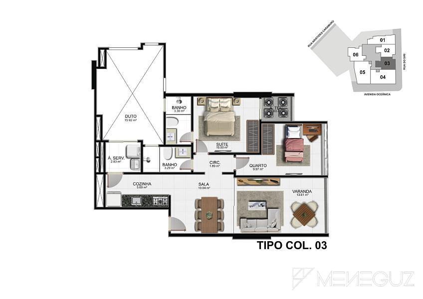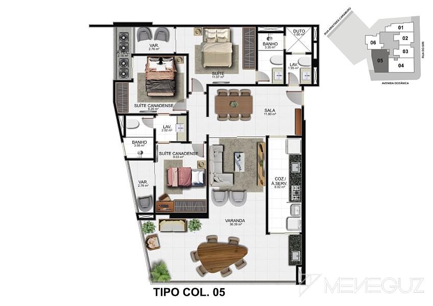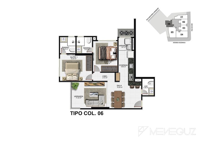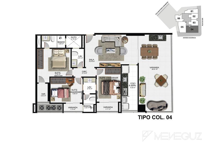 Imagine a privacidade de ter apenas 6 apartamentos por andar, garantindo a tranquilidade e o espaço que você e sua família merecem. Escolha entre plantas inteligentes de 2 ou 3 suítes, todas com acabamento de alto padrão e design que privilegia o conforto e a elegância.