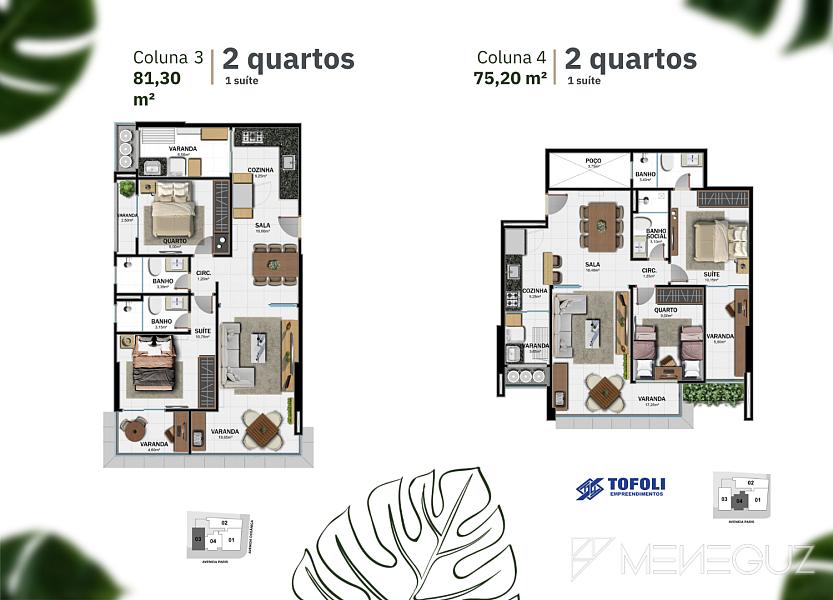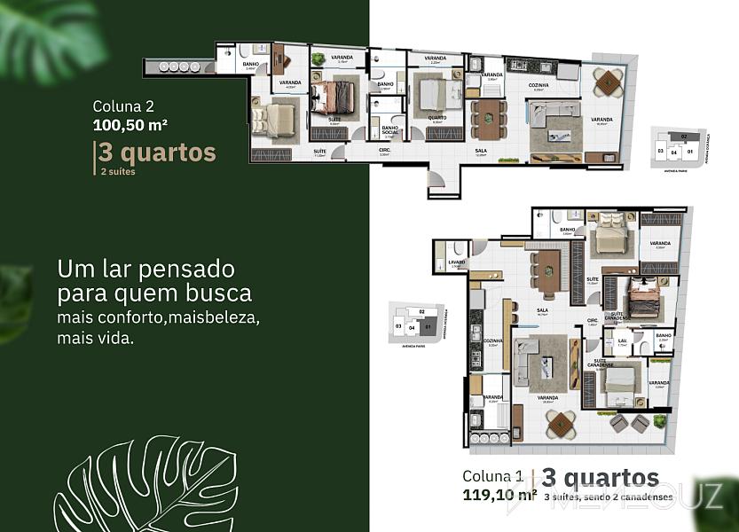 • Tipologia dos apartamentos: Oferece apartamentos de 2 e 3 quartos, com destaque para unidades de 3 quartos que possuem 5 varandas.