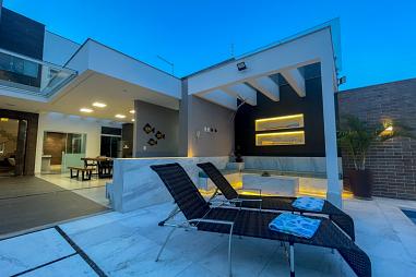 Com uma piscina de tirar o fôlego e uma vista panorâmica deslumbrante, você pode relaxar e desfrutar do melhor que a vida tem a oferecer. Além disso, a casa também possui uma adega climatizada, sala de cinema e um amplo jardim paisagístico.