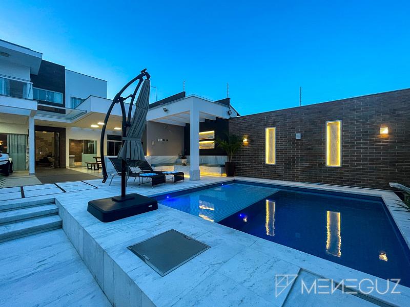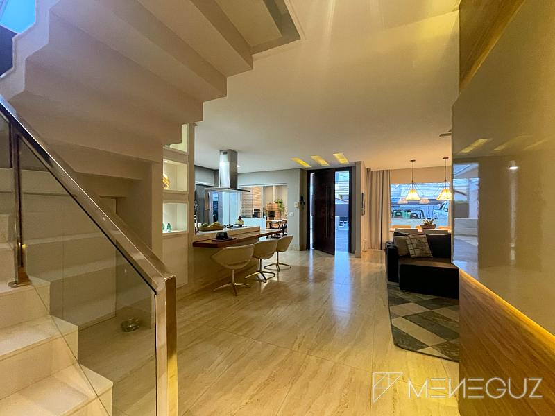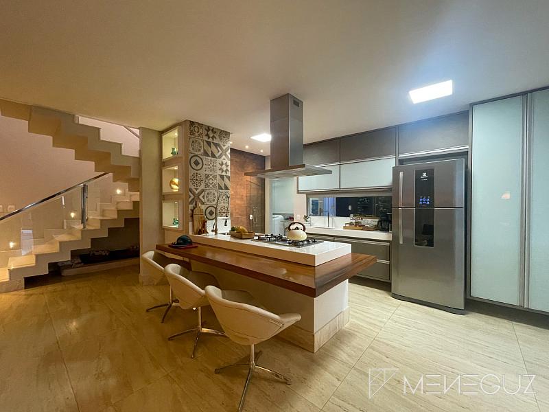 Belíssima casa duplex composta por 4 quartos, sendo duas suítes, sala de jantar, sala de estar, suíte master com closet, piscina, área de churrasco, garagem para 6 carros, com lote de 360 metros quadrados.