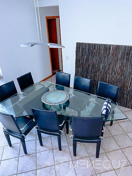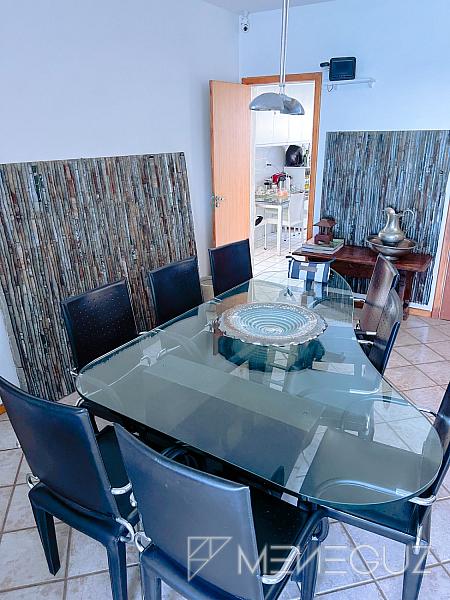 • Sala ampla com 2 ambientes (jantar e estar/TV) integrada à varanda com cortina de vidro